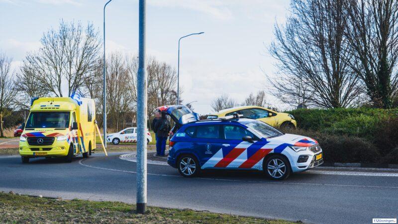 Ongeval op Het Zwet in Delfzijl, auto belandt op rotonde