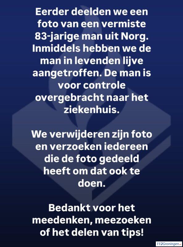 Norg – De politie is op zoek naar de 83-jarige Heinrich uit Norg. Hij is