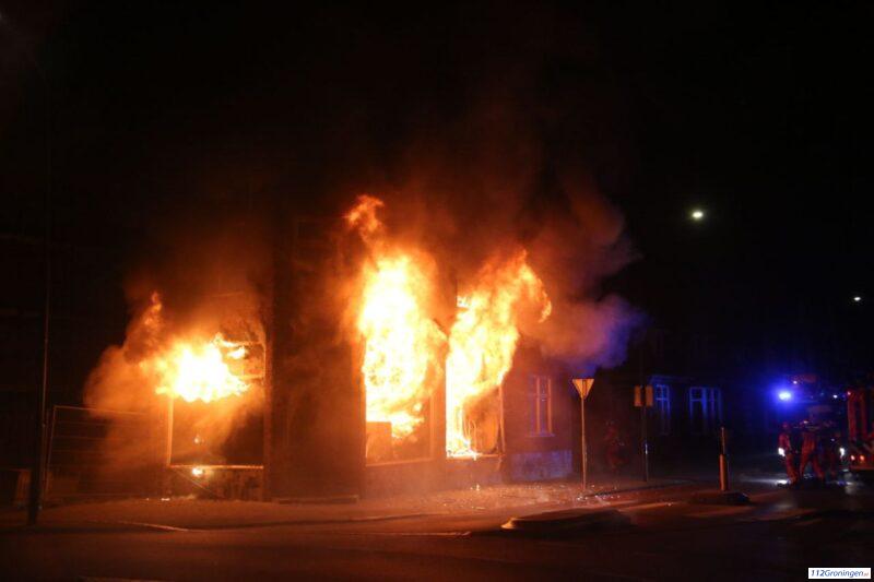 Veendam – Een korte maar zeer felle uitslaande brand heeft zondag op maandagnacht het voormalig