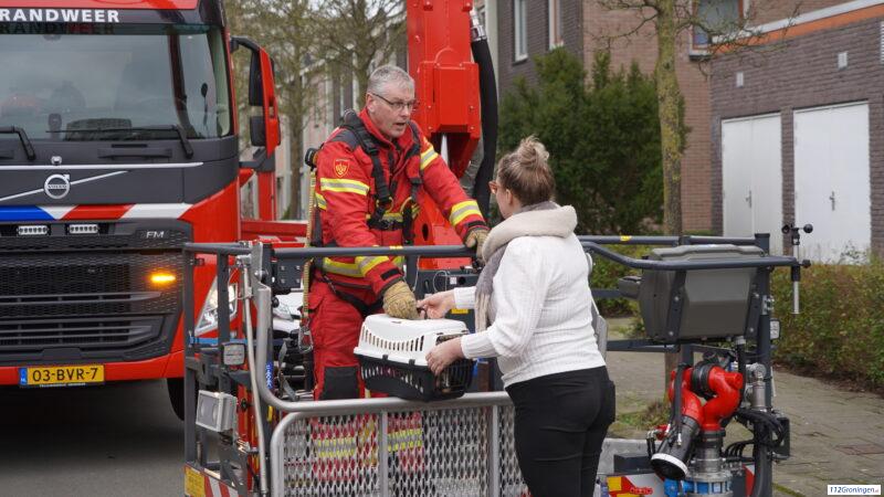 Groningen – De brandweer moest dinsdagmiddag uitrukken voor voor een kat op hoogte, deze durfde