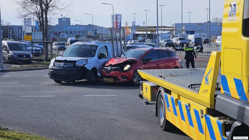 Groningen- Op de kruising Osloweg/Stettinweg heeft woensdag een forse aanrijding plaatsgevonden tussen twee voertuigen. De