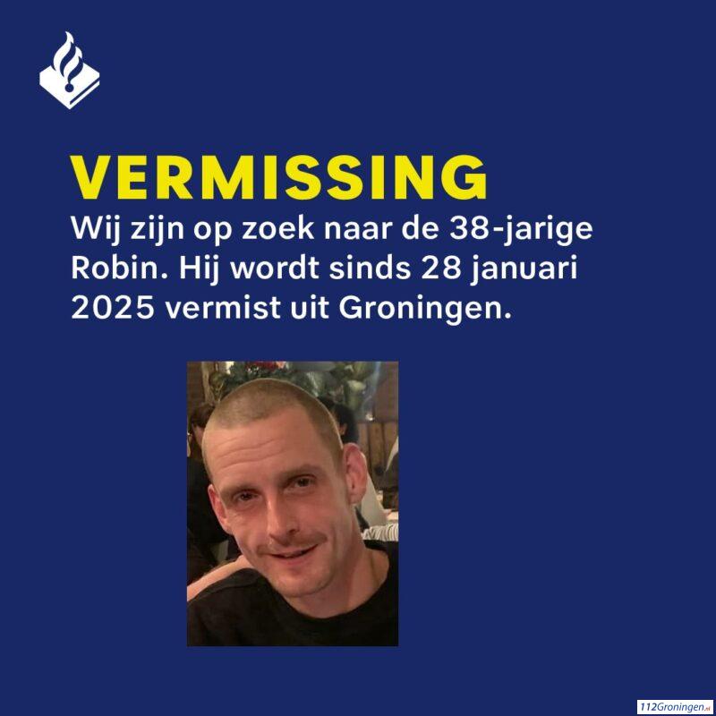 Groningen – De 38-jarige Robin is sinds dinsdag 28 januari 2025 vermist uit Groningen. Dat
