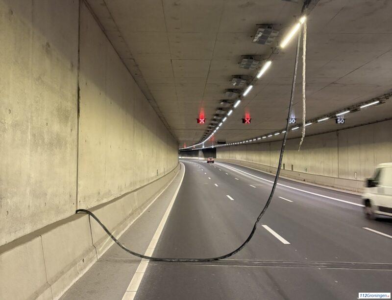 Groningen – Dinsdagochtend hing een rubberen strip los in de verdiepte ligging van de N7