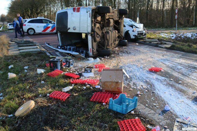 Weg ligt vol met kaas en eieren na ongeval in Westerlee