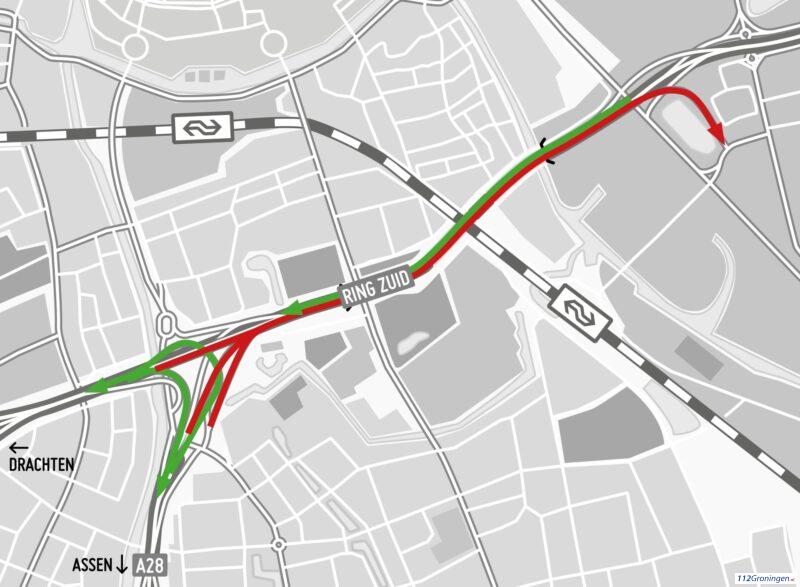 Groningen – De zuidelijke ringweg is in de nacht van vrijdag op zaterdag en op