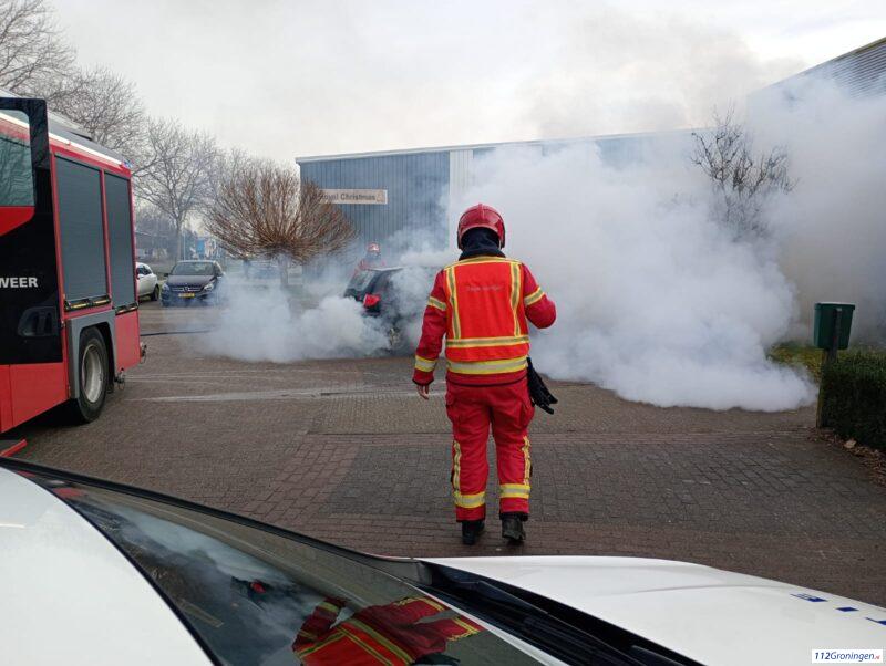 Winschoten – Aan de Transportbaan heeft vrijdagmorgen door onbekende oorzaak een auto vlam gevat. De