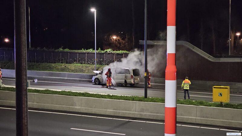 Busje brand volledig uit op de N7 in Groningen (Video)