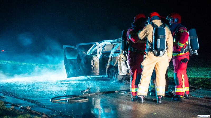 Auto volledig uitgebrand op de Zwaagweg in Woldendorp