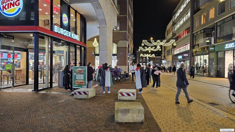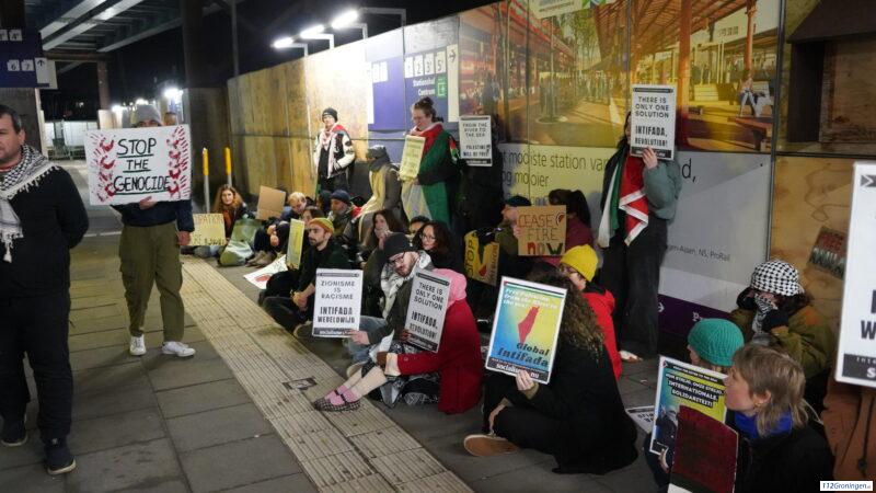 Groningen- Vrijdagavond een korte demonstratie door Pro Palestina demonstranten op het Hoofdstation. De politie kwam