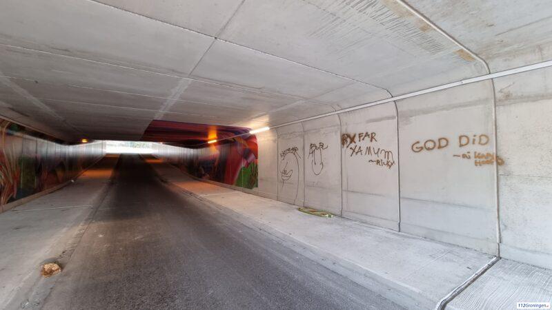 De Papiermolentunnel is nog maar korte tijd open, maar inmiddels is de eerste graffiti al