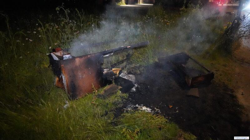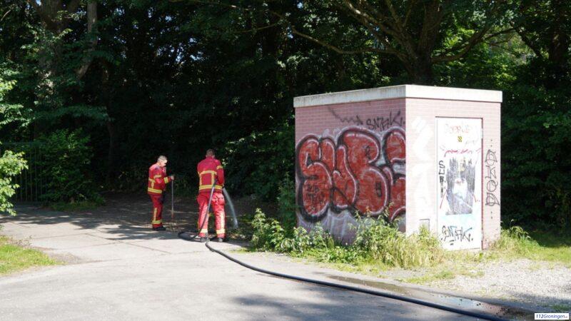 Buitenbrand naast transformatorhuis aan het Wilgenpad in Groningen