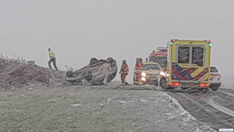 Auto slaat over de kop op oprit N366