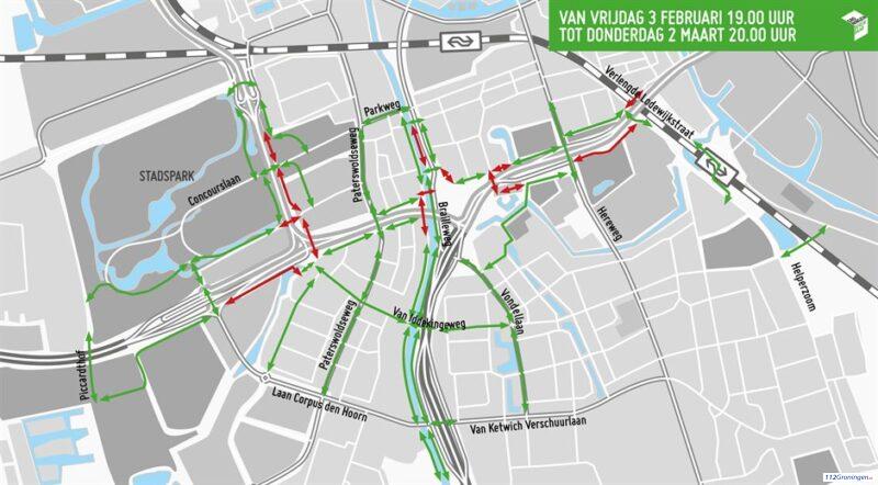 Groningen – De oprit bij Laan Corpus den Hoorn richting het Vrijheidsplein is maandag 6