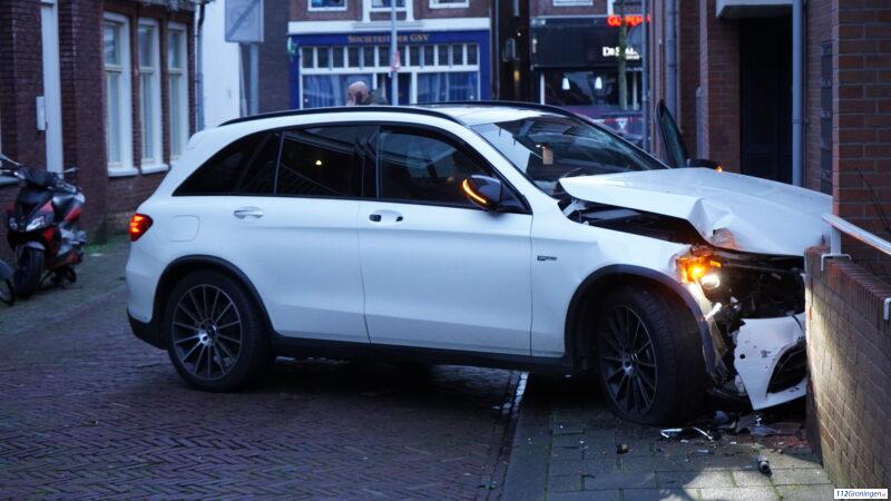 Groningen – Een peperdure, witte Mercedes knalt woensdagochtend tegen een gevel in Groningen. De politie