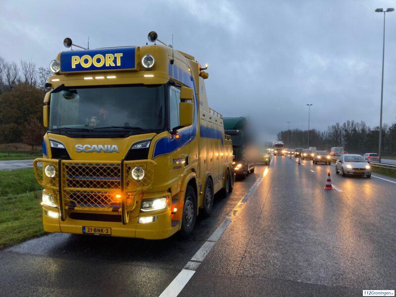 Foxhol – Wegens een gestrande vrachtwagen met motorische problemen was donderdagmiddag rond 16:15 uur een