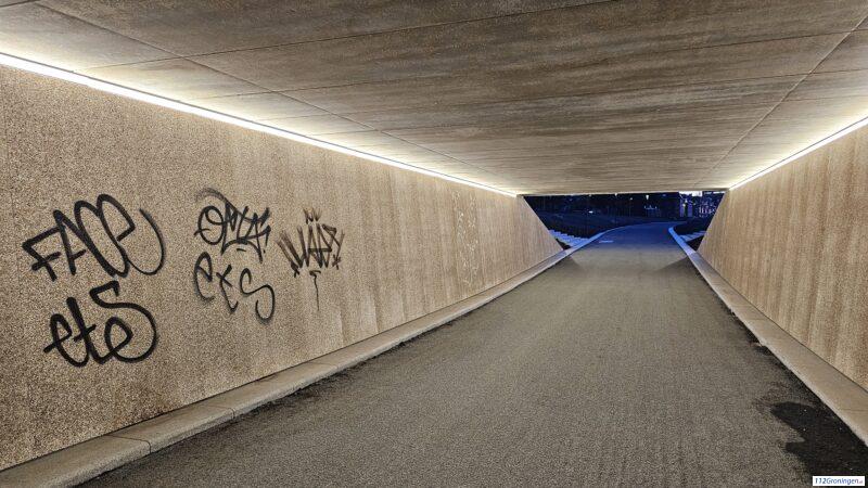 Groningen – In de Esperantotunnel is donderdag op vrijdagnacht al graffiti aangebracht door vandalen. Donderdag