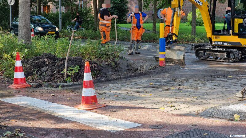 Groningen- Op de Eikenlaan ter hoogte van zwembad de Parrel is donderdagmiddag een waterleiding lek