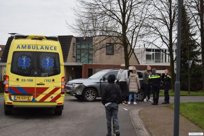 Auto en scooter botsen op de Friesestraatweg in Groningen; twee licht gewonden