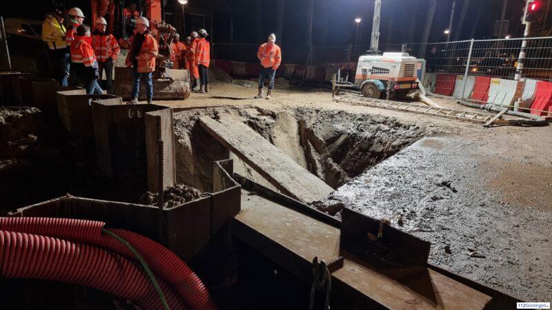Groningen- Bij de werkzaamheden aan de verdiepte ligging is een rioolpersleiding geraakt. Het gebeurde tijdens
