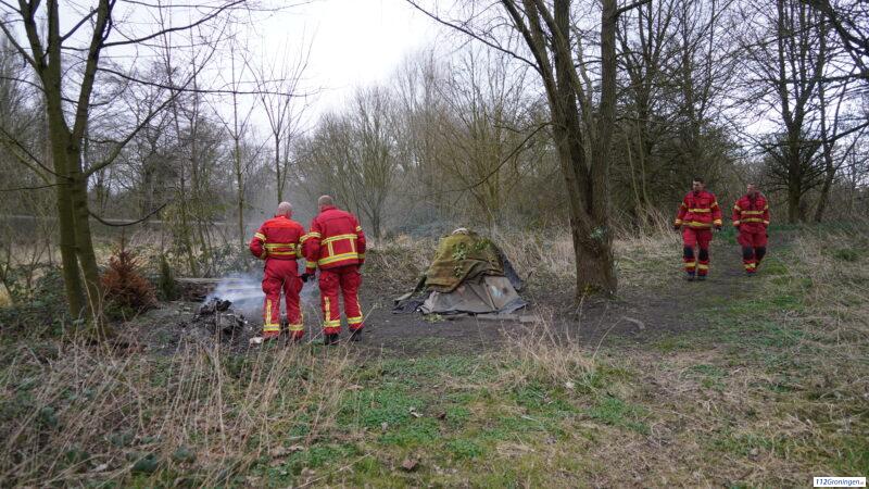 Groningen – In het Stadspark stond dinsdagmiddag een bult afval in brand van een dakloze.