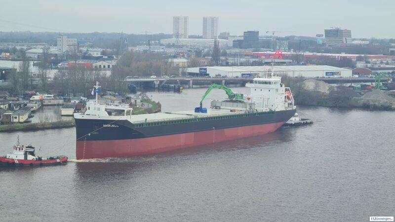Nieuwbouwschip (Aasfjell) door Groningen richting Delfzijl (Video)
