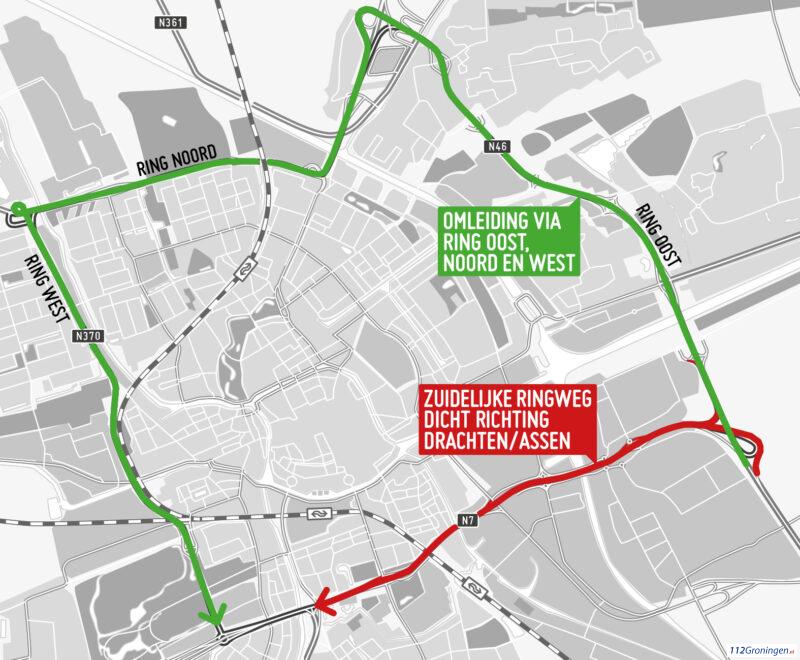 Groningen – De zuidelijke ringweg is van vrijdag 22.00 uur tot zaterdag 06.00 uur is