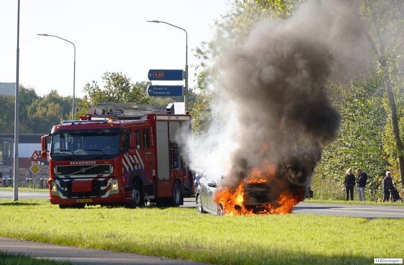 Auto verwoest door brand op Groningerstraat bij de Punt (Video)