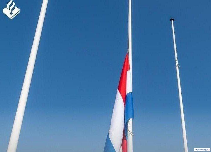 Vlag halfstok bij politiebureau in Leek ter nagedachtenis aan omgekomen agent