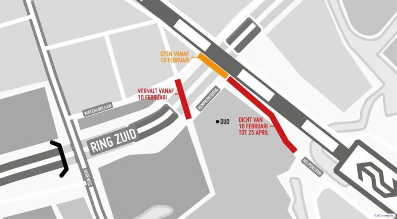Groningen – De Helperzoom is van maandag 10 februari 07:00 uur tot vrijdag 25 april