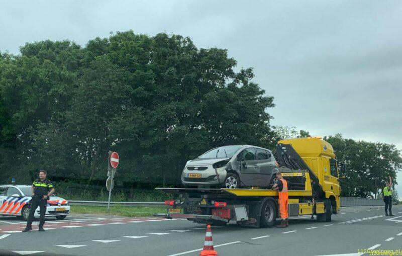 Auto slaat over de kop op afrit N46 nabij Loppersum