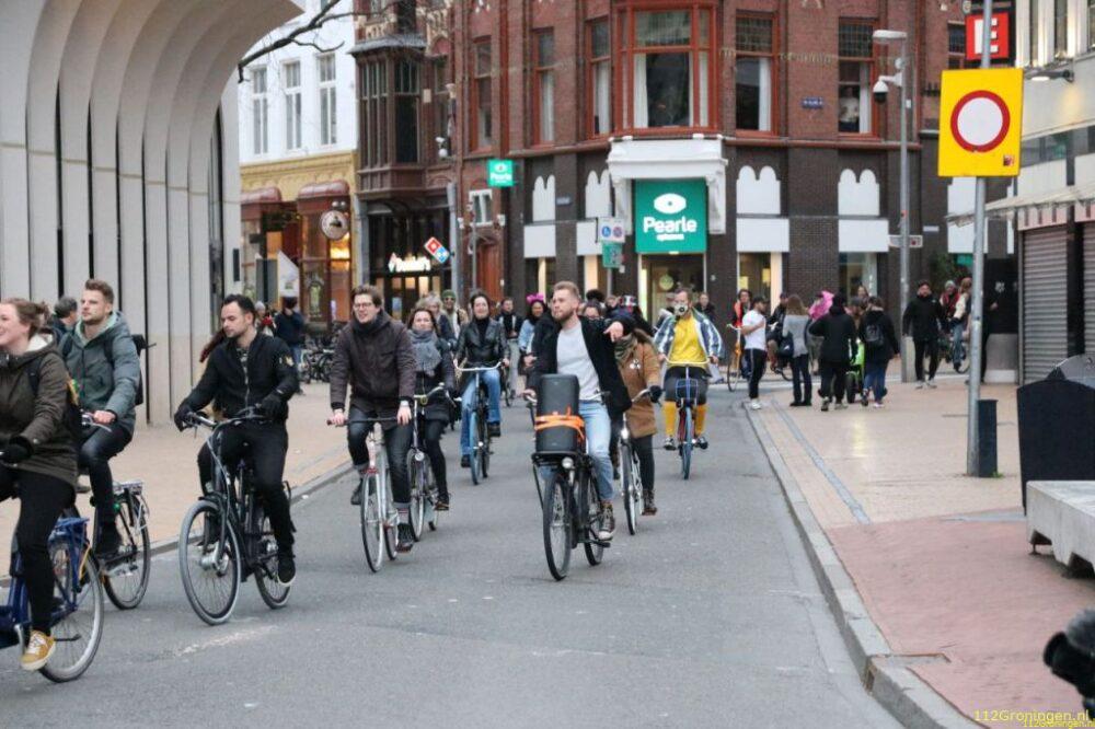 Ruim tweehonderd fietsers trokken zaterdagavond door de Groninger binnenstad met een fietsparade.