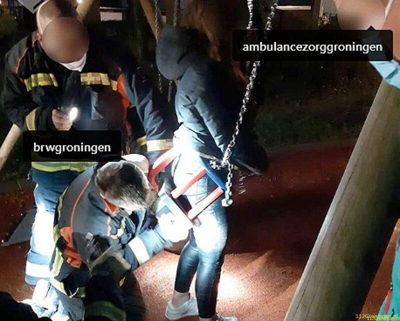 Een meisje is woensdagavond op de J.H. Egenbergerstraat in Hoogkerk bekneld komen te zitten op