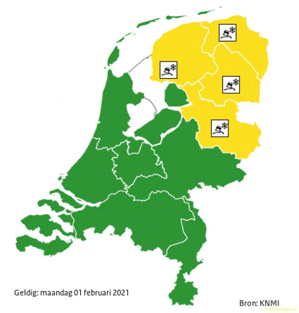 Het KNMI heeft code geel voor Groningen afgeven vanwege kans op gladheid.