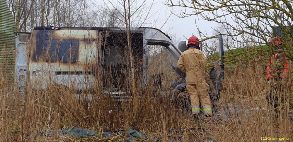 Bedrijfsbusje volledig uitgebrand in Zuidbroek
