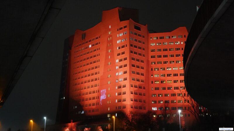 Groningen – Het Gasunie gebouw wat oranje is vanwege geweld tegen vrouwen is deze week
