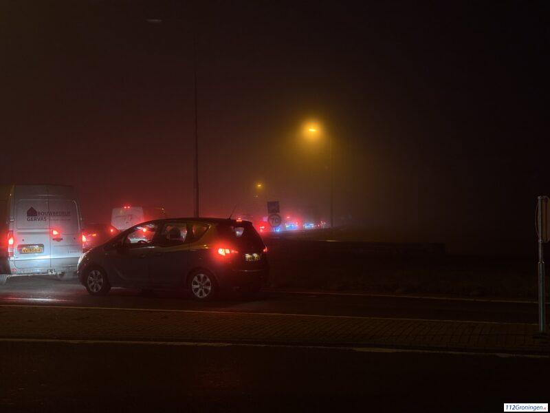 File door ongeval in de mist op de N33 bij Meedhuizen