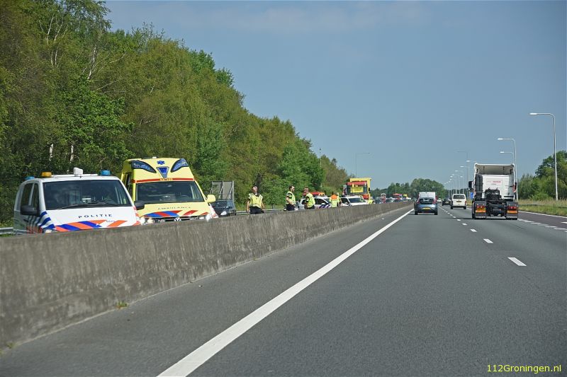 Auto slaat over de kop op A28 bij Eelde; Kilometers lange file