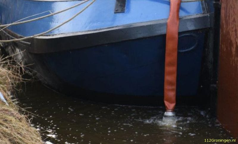 Op het Schuitendiep was dinsdagmorgen een lekkende woonboot. De boot maakte water door een nog