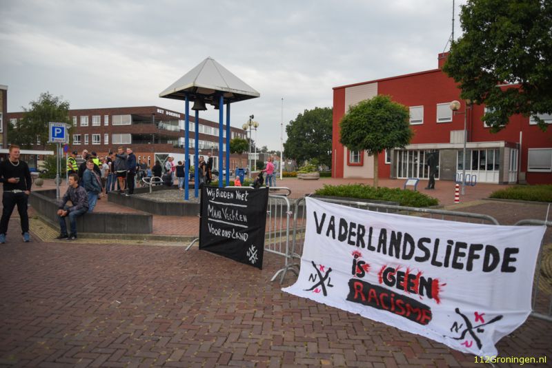 Zaterdagmiddag protesteerden zo'n 50 mensen tegen het Azc op het plein voor het gemeentehuis in