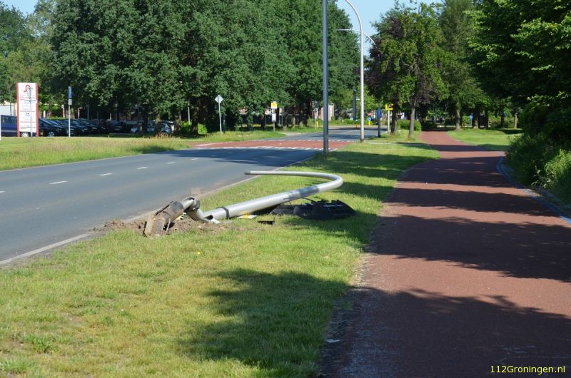 Op de Navolaan is zondagochtend een ongeluk gebeurd waarbij een auto tegen een lantaarnpaal was
