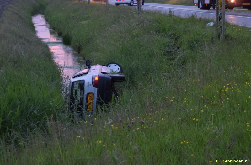 Maandagavond is er een auto in de sloot beland aan de N999 bij Zandeweer.