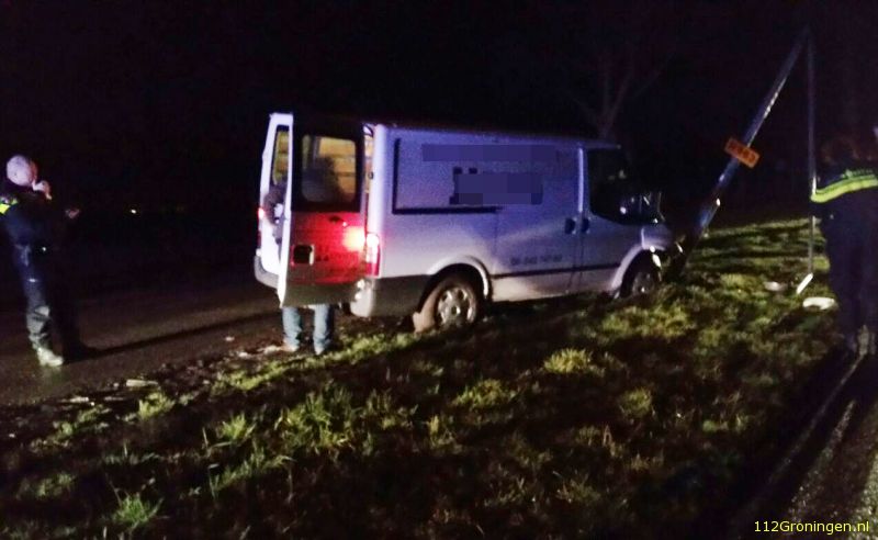 Op de weg even voor de brug bij Aduard is zaterdagavond door nog onbekende reden