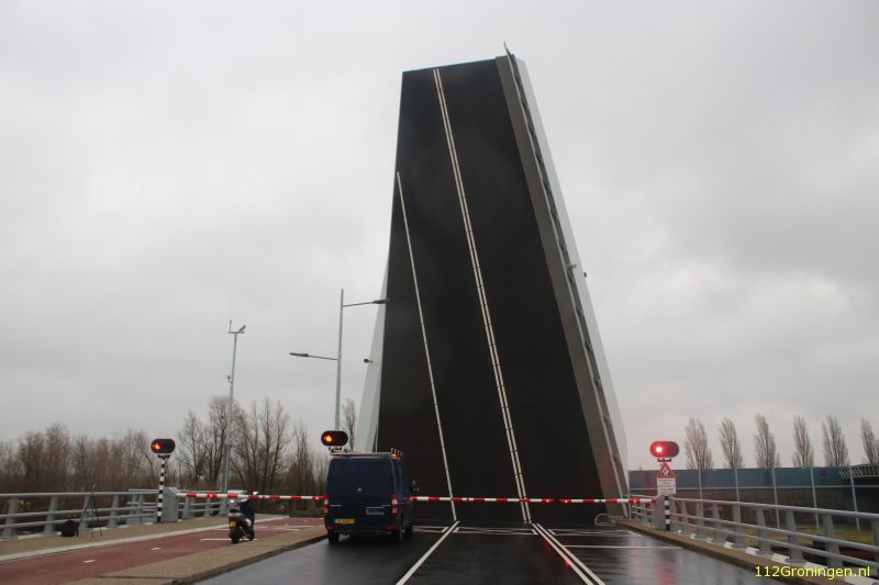 De Sontbrug over het Winschoterdiep stond dinsdagmiddag weer in storing.