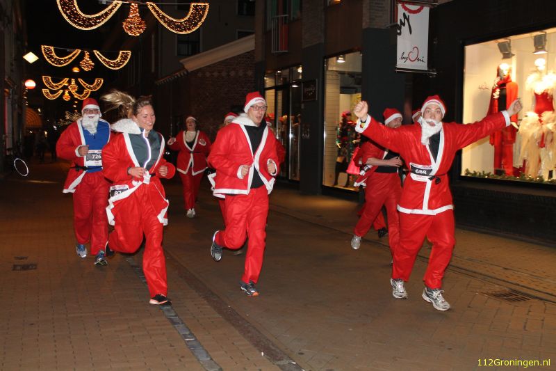 De Groninger binnenstad kleurde zaterdagavond rond 21:00 uur rood van de kerstmannen en -vrouwen.