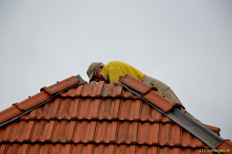 Schoorsteen van huis wegens aardbevingschade in Wagenborgen