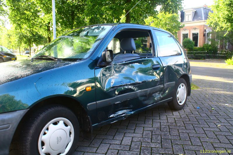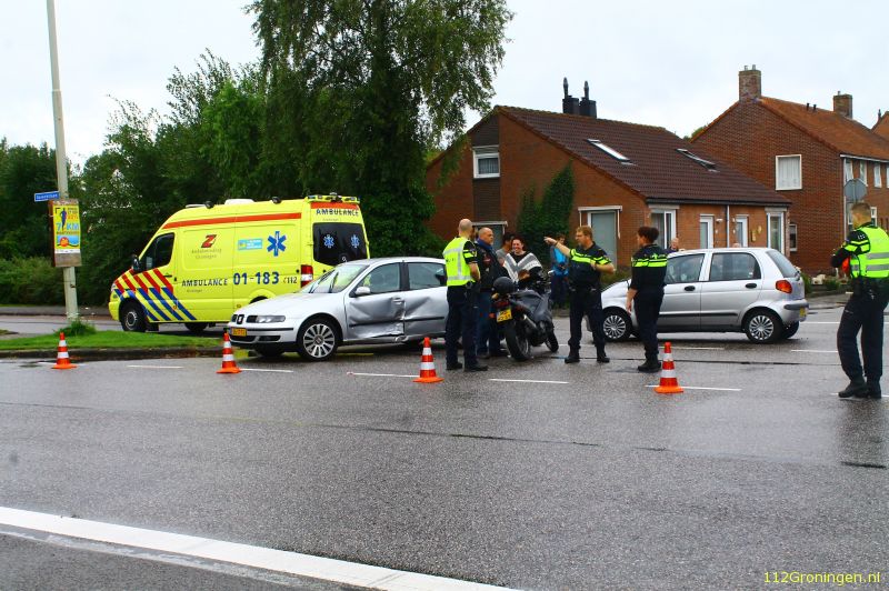 Aan de Heemskesweg in Farmsum zijn vrijdag een 45-kilometer auto en een motorrijder op elkaar