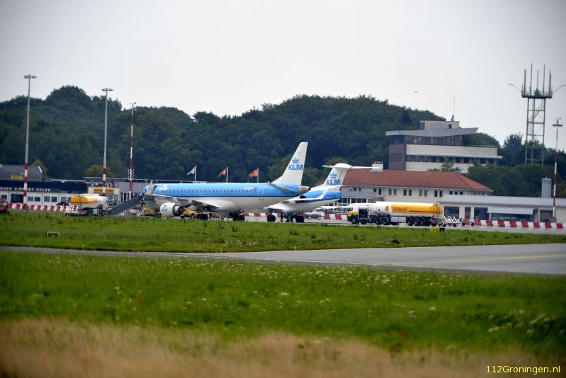 Op Airport Eelde zijn maandagmiddag twee KLM-toestellen even geland. Ze waren onderweg naar Schiphol, maar