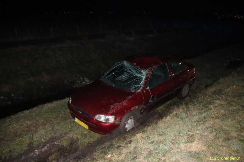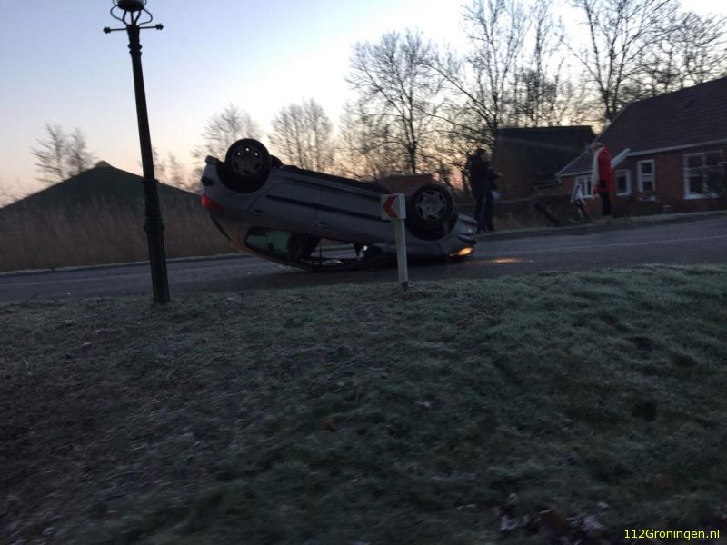 Vrijdagmorgen is een auto over de kop geslagen in Lutjegast. Het voorval gebeurde op De