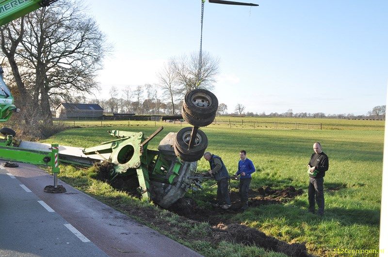 Kraan in de sloot door uitwijkmanoeuvre in Yde