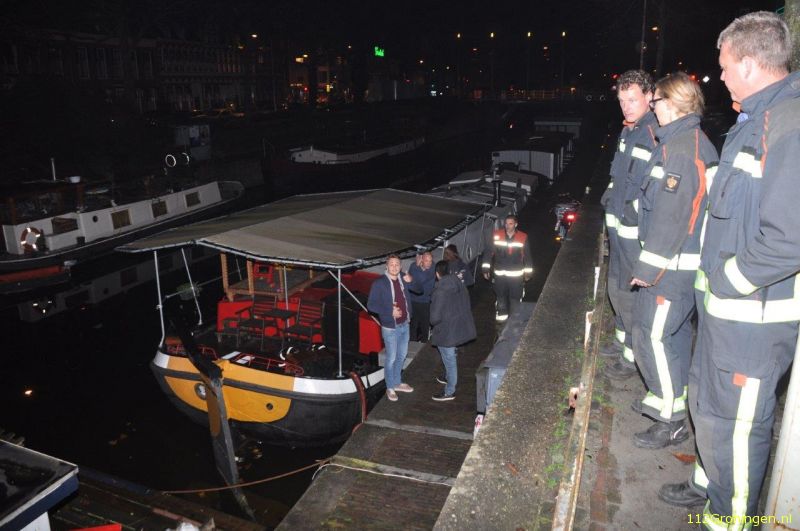 Om 22:15 uur een melding van een zinkende woonboot aan de Spilsluizen. Ter plaatse bleek